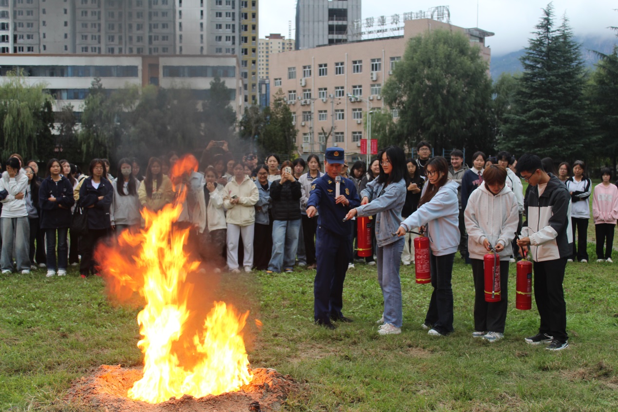 疏散结束后,成县消防中队指战员为师生进行了灭火器使用实操培训,通过“提、拔、握、压”四字口诀讲解使用方法,并现场点燃模拟火源。师生代表轮流上前进行实操体验,切实掌握了扑救初期火灾的关键技能。